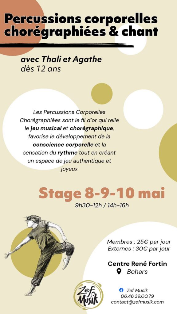 • Atelier en binôme : Thali et Fabien Aubé : Percussions corporelles chorégraphiées et chant, Conservatoire de la Rochelle